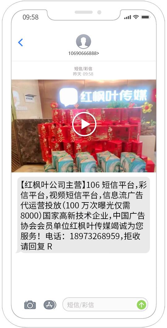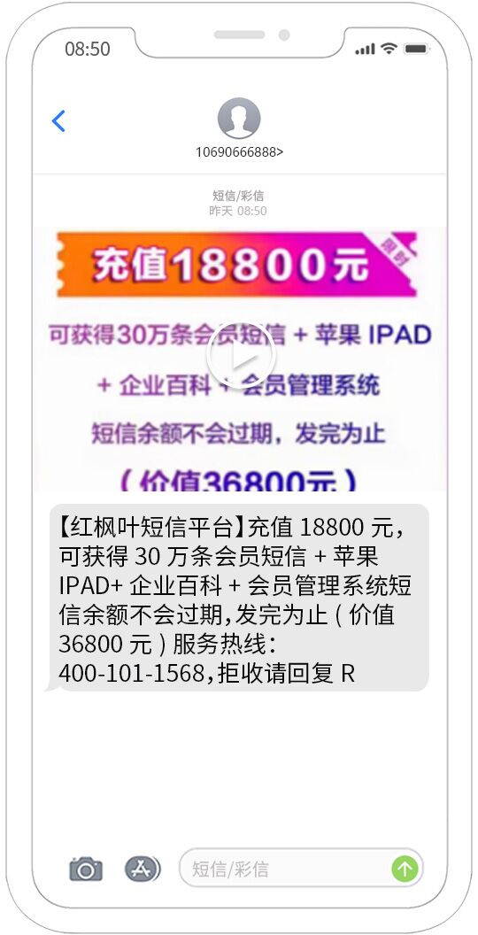 視頻短信發送能夠覆蓋移動、聯通、電信用戶,正規集團視頻短信通道,快速、可靠、穩定、形象好,能快速將您的訊息投放到用戶的手機。